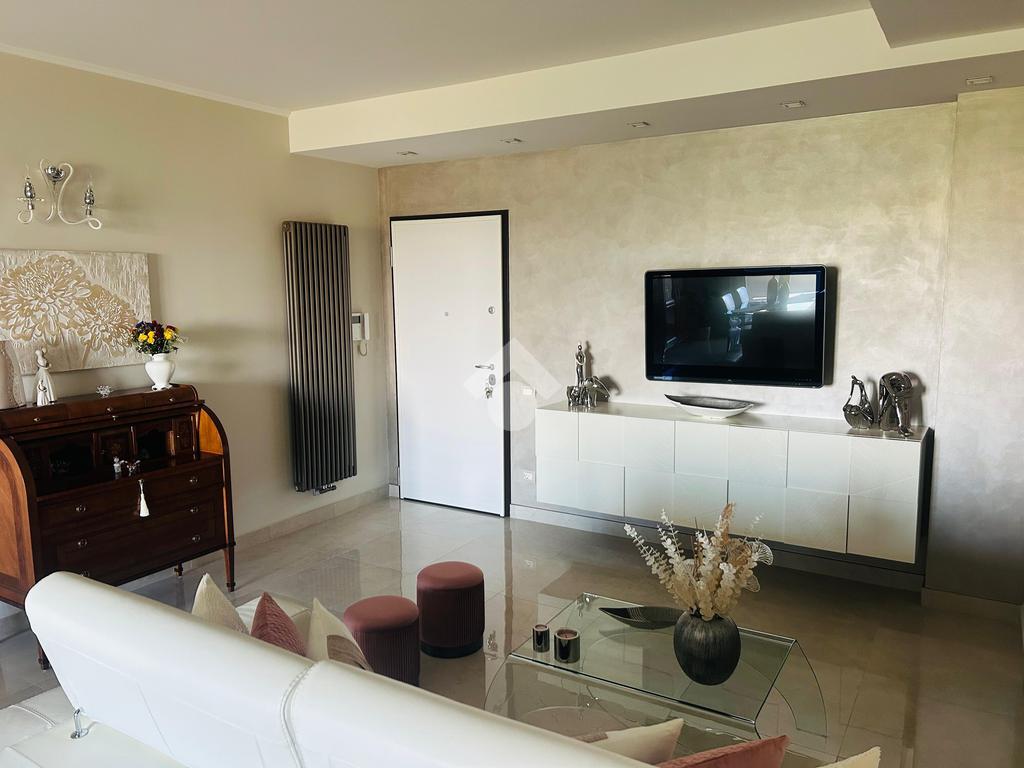La soluzione è stata ottimemente rifinita con materiali di pregio, dotata di videocitofono, climatizzatori d'aria in tutti gli ambienti, tapparelle elettriche, infissi con doppi vetri ed apertura vasistas e tende con copertura in vetro sul balcone della zona giorno.