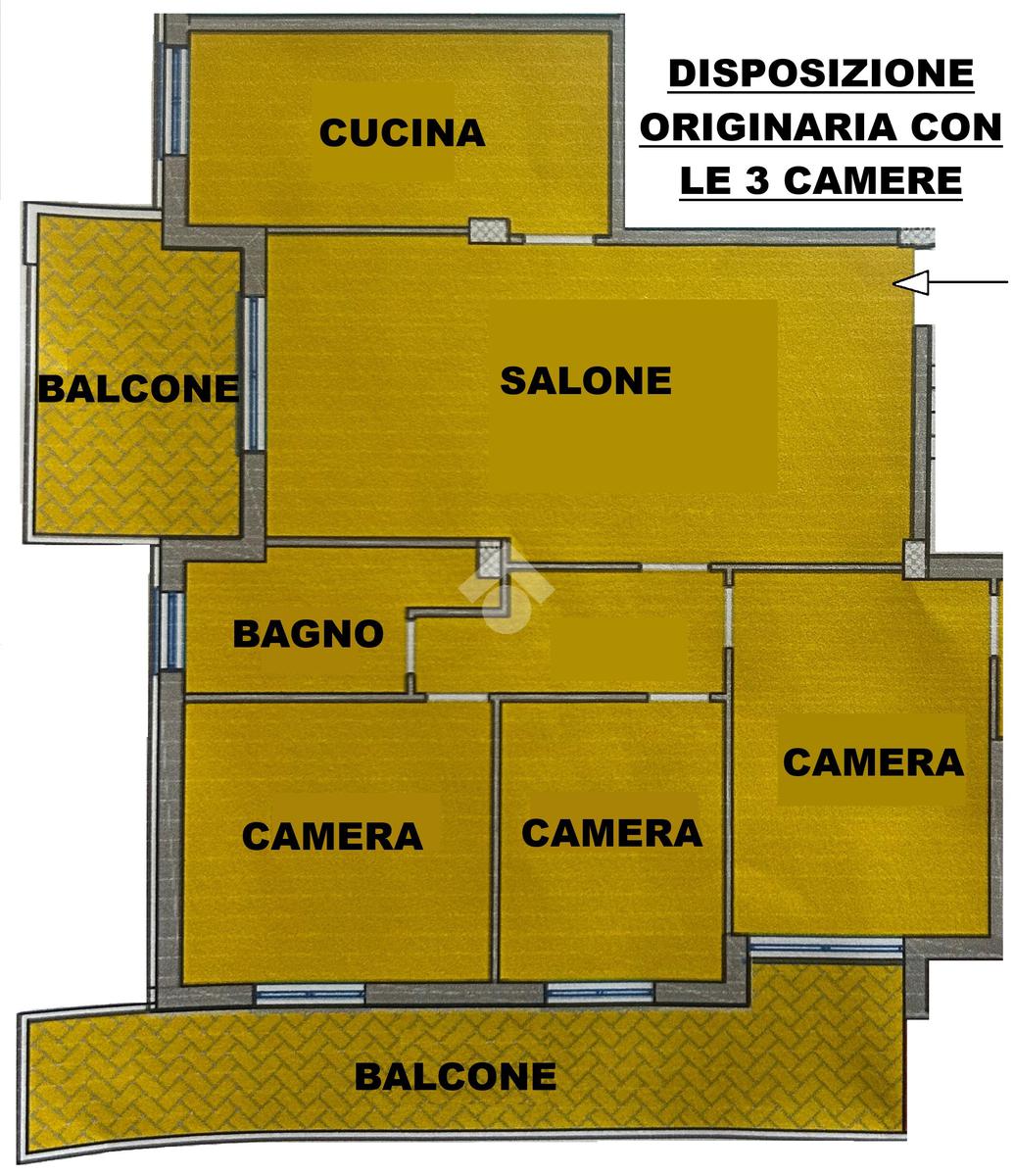 Salone di 31 mq e cucina abitabile di 15 mq con uscite sul balcone abitabile, 2 camere matrimoniali con uscite sul balcone, ampio bagno con doppio lavandino e vasca, stanza adibita a lavanderia di 5 mq (da poter utilizzare come altra camera da letto oppure come 2° bagno, avendo già tutti gli scarichi predisposti) e ripostiglio a muro.