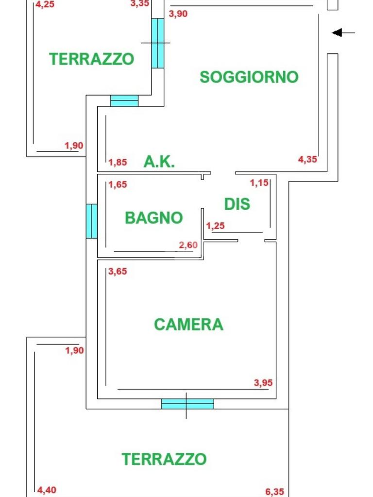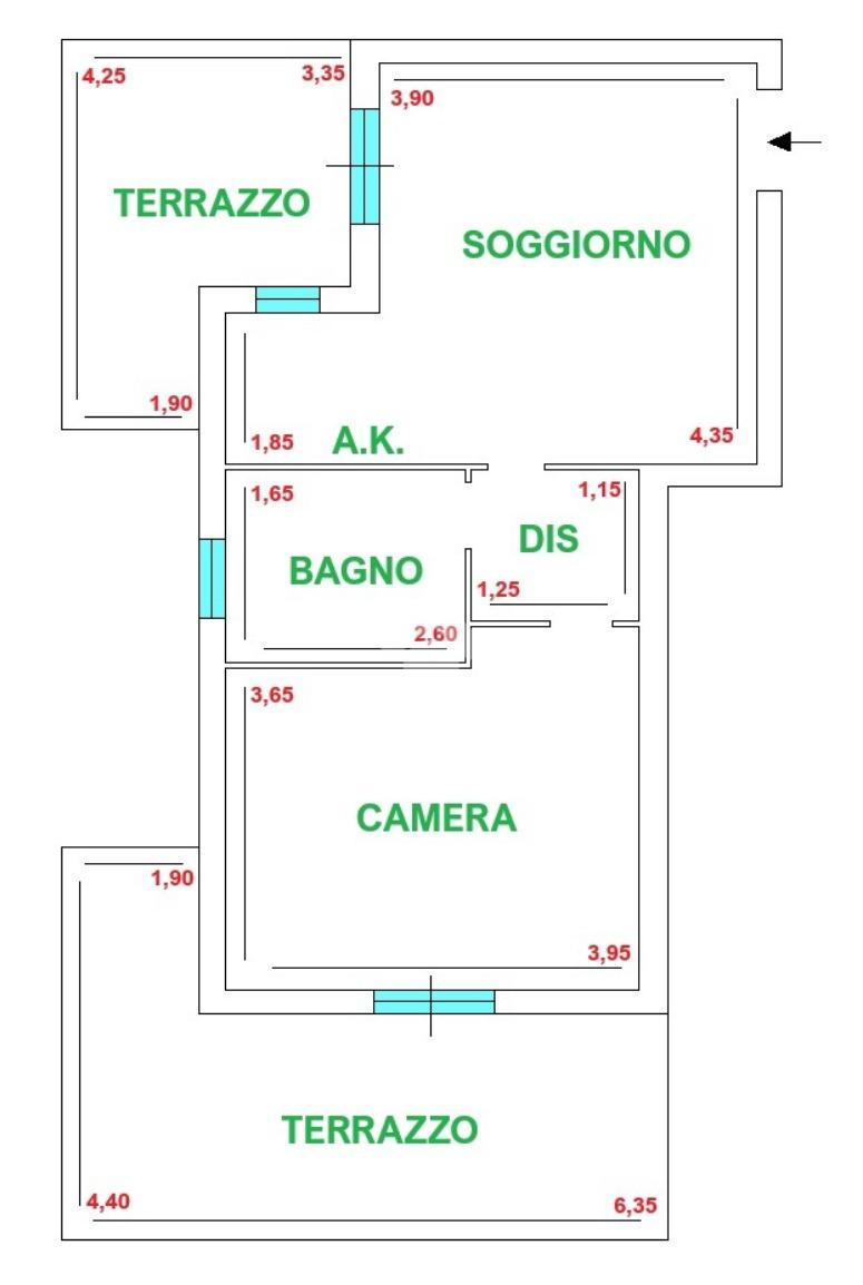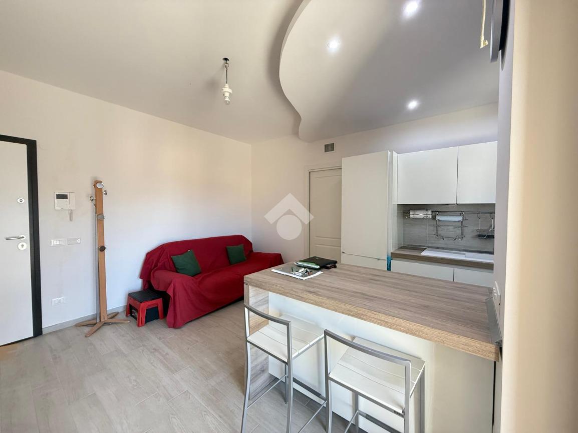 L'immobile è composto da soggiorno con angolo cottura, camera, bagno e due ampi terrazzi a livello. Completa la proprietà un box auto di 20mq e una cantina di 5mq.