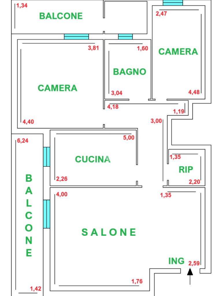 L'immobile è composto da ingresso, ampio salone, cucina abitabile entrambi con uscita sul balcone. Nella zona notte troviamo una camera matrimoniale con porta finestra che accede sul balcone dove si trova una comoda zona lavanderia coperta, bagno e ripostiglio.