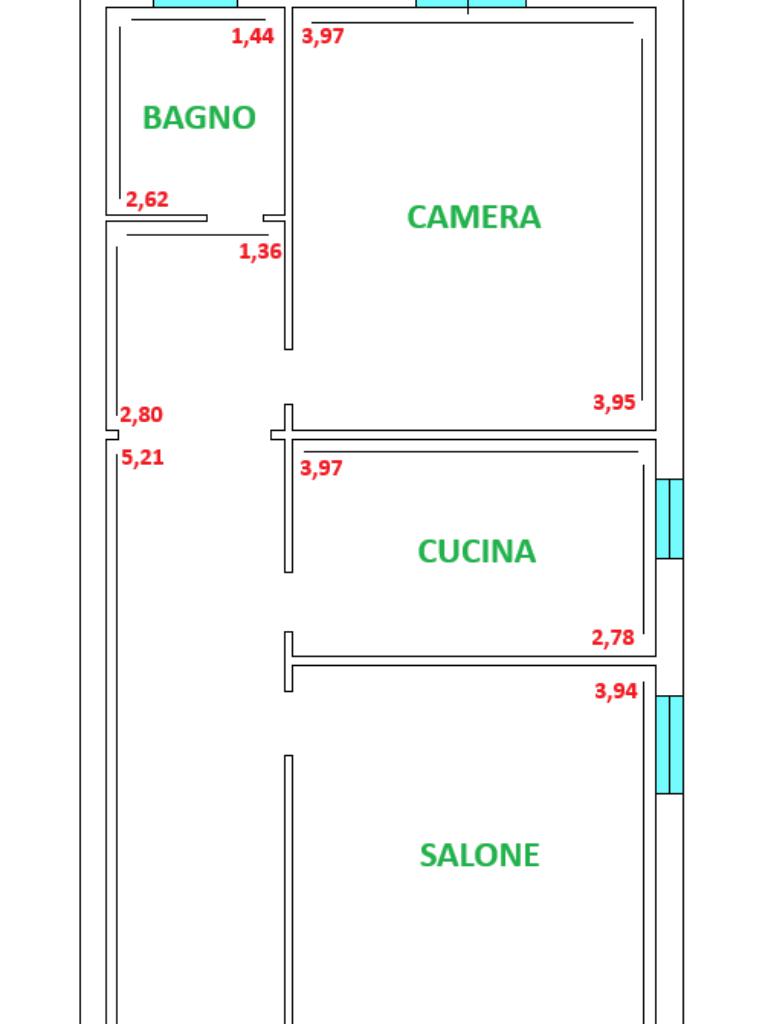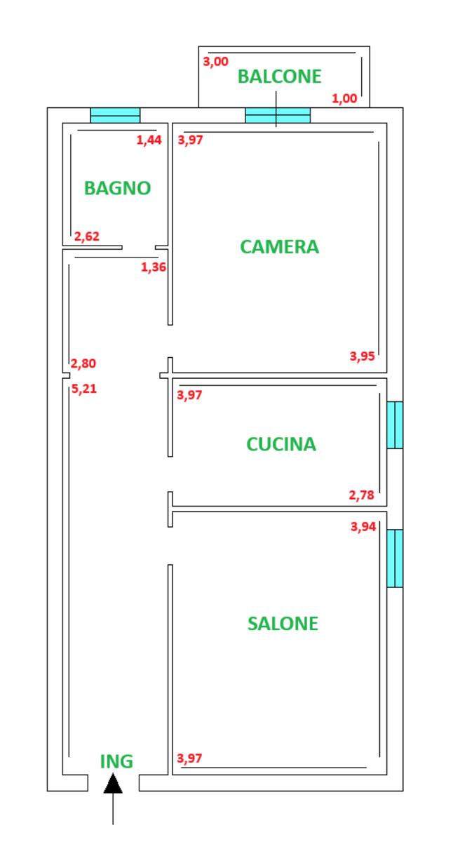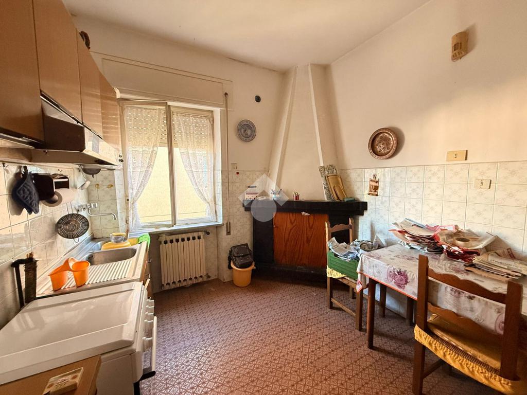L'immobile è composto da ingresso, salone, cucina abitabile con camino, camera, bagno e un balcone. La soluzione all'interno si presenta allo stato originario con infissi in alluminio monovetro e grata in camera.