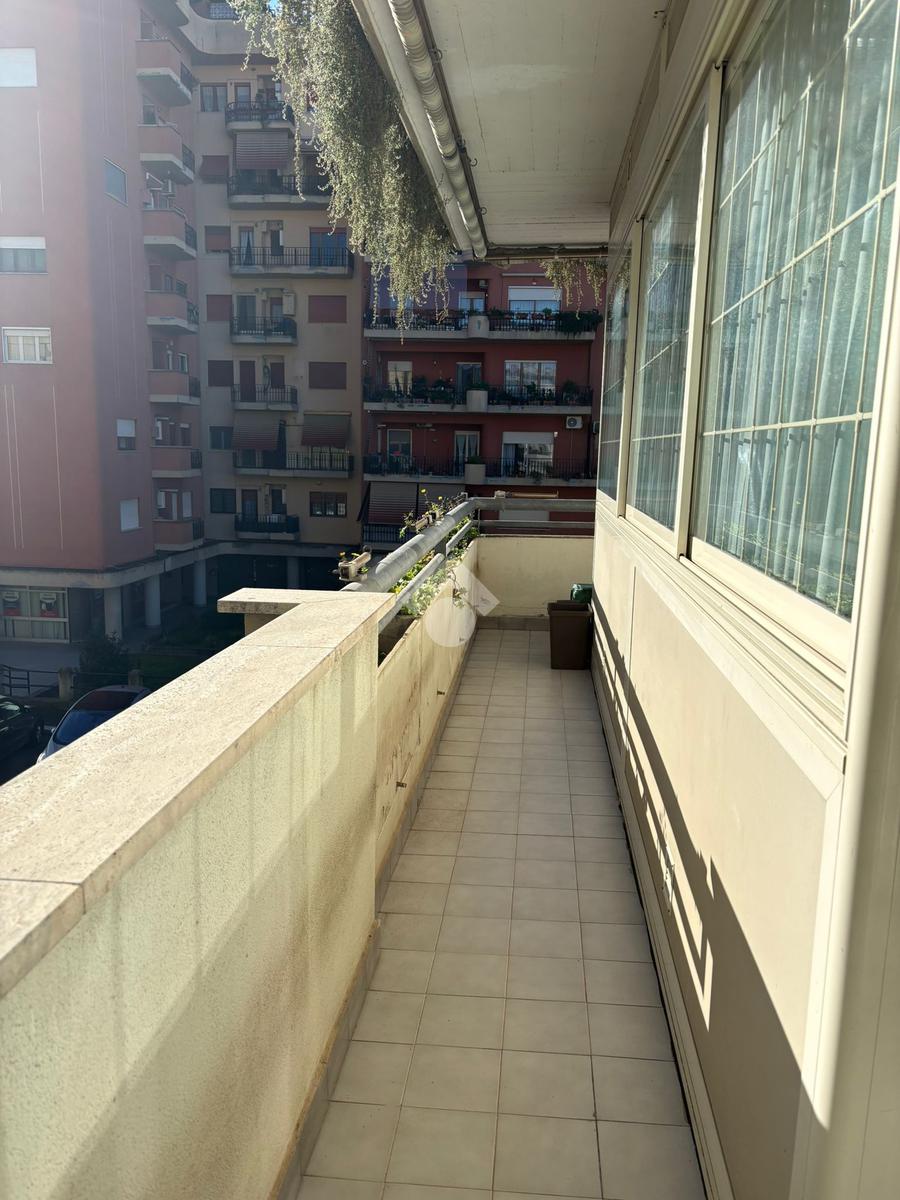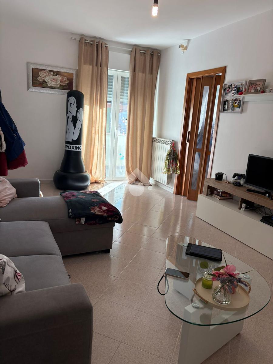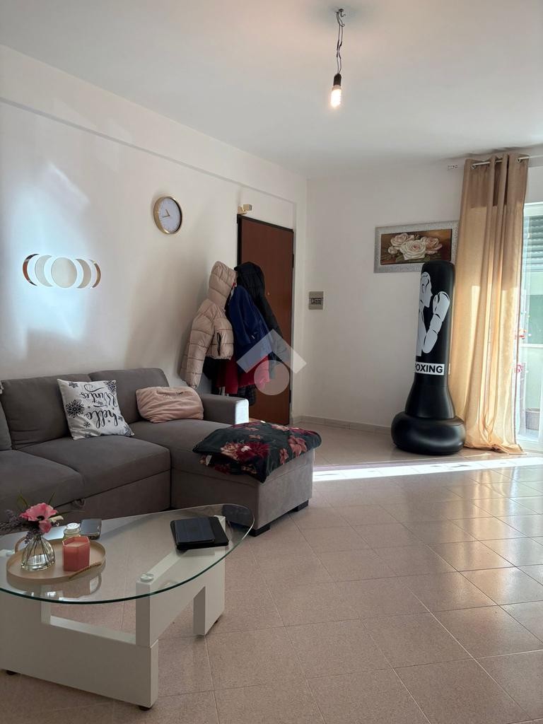 Sala, cucina separata con annesso balcone, 2 camere da letto (di cui una con balcone) e bagno con vasca. L'immobile si presenta in buono stato interno, dotato di portone blindato, infissi in alluminio con doppio vetro, caldaia a condensazione e pavimentazione in monocottura uniforme in tutta casa.
