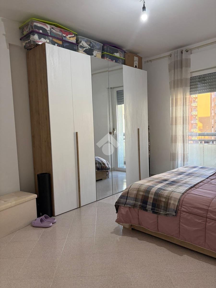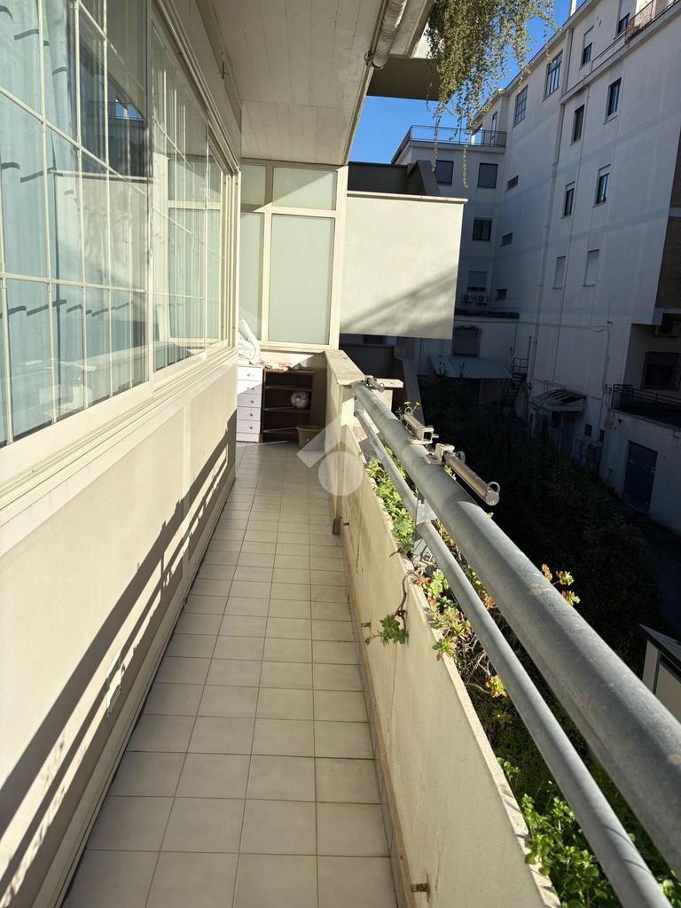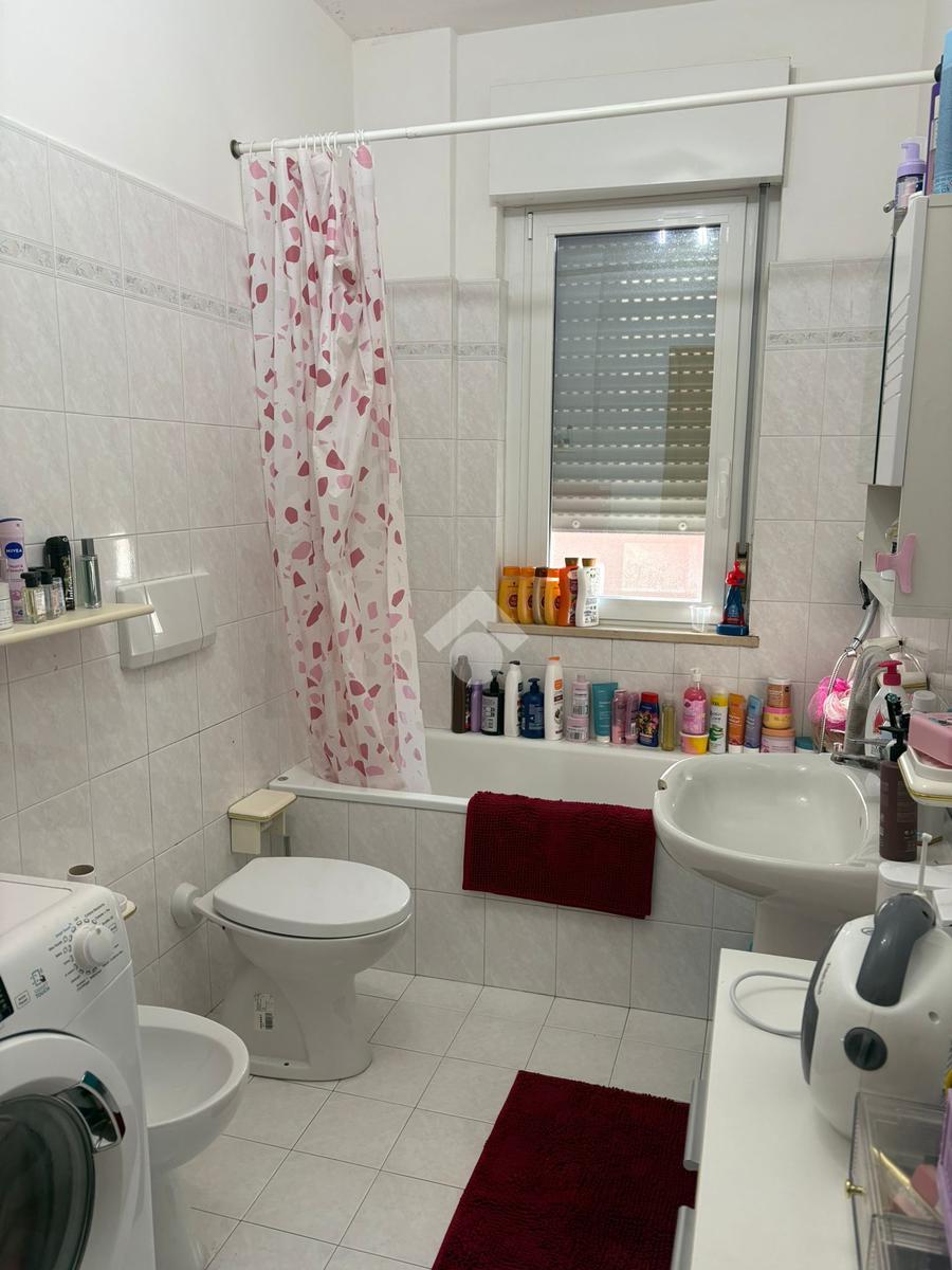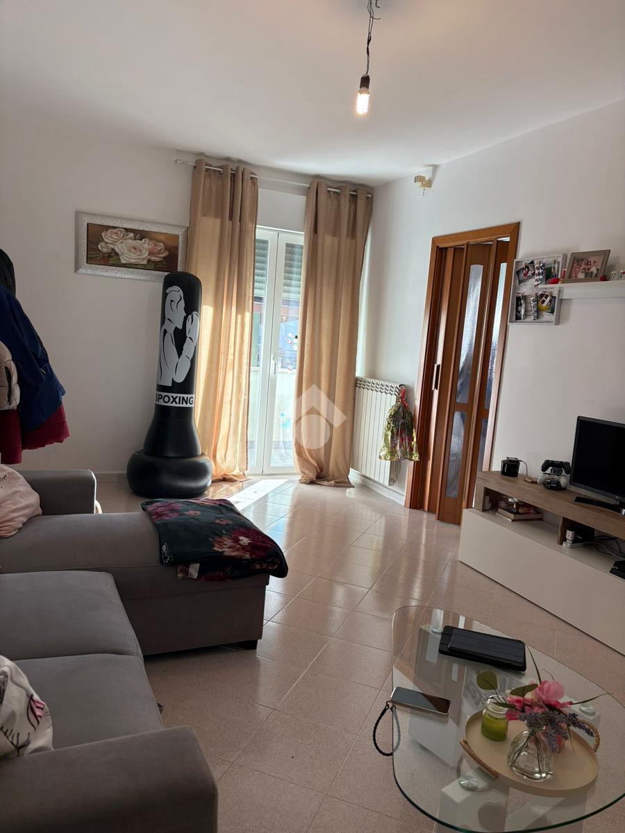 Sala, cucina separata con annesso balcone, 2 camere da letto (di cui una con balcone) e bagno con vasca. L'immobile si presenta in buono stato interno, dotato di portone blindato, infissi in alluminio con doppio vetro, caldaia a condensazione e pavimentazione in monocottura uniforme in tutta casa.