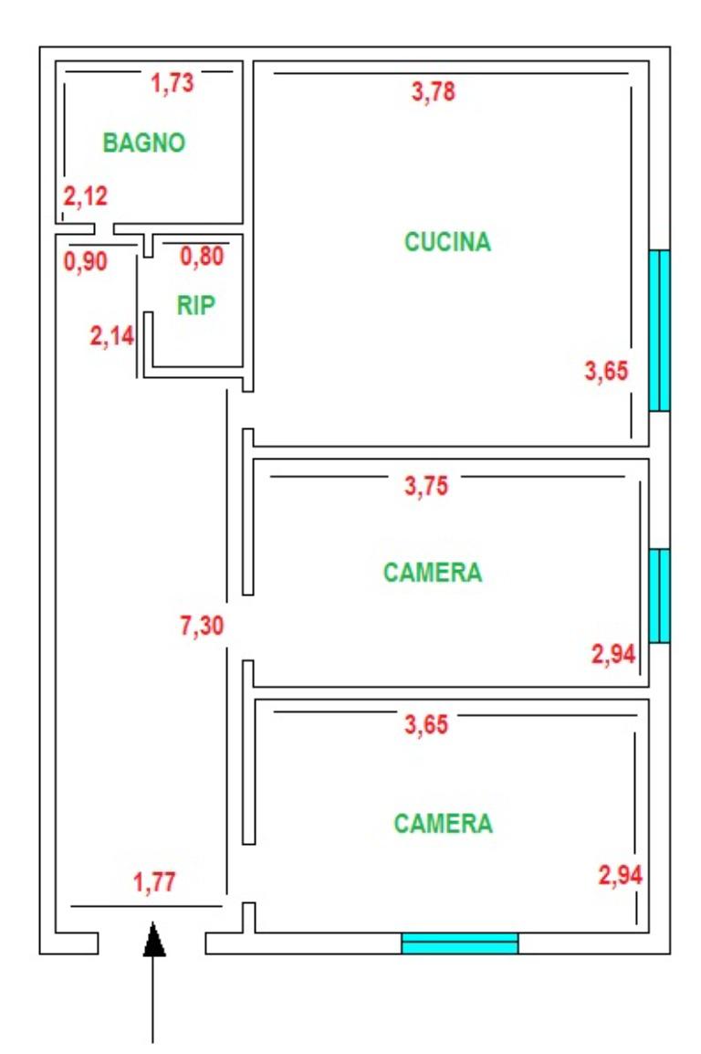 L'immobile è composto da ingresso, salone, cucina abitabile, camera, bagno e ripostiglio.