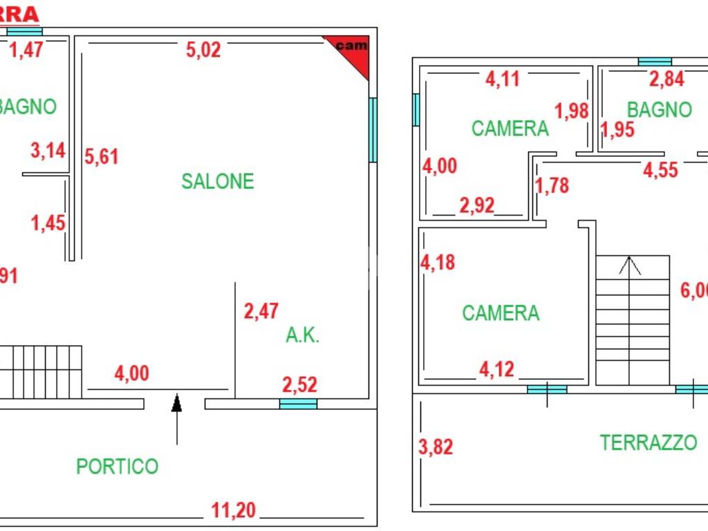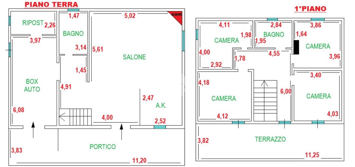 Piano terra con portico di 43 mq. Ingresso, salone con camino, cucinotto finestrato e bagno. Si accede al 1°piano con una comoda scala in marmo e troviamo 4 camere da letto e bagno con vasca. Terrazzo di 43 mq.