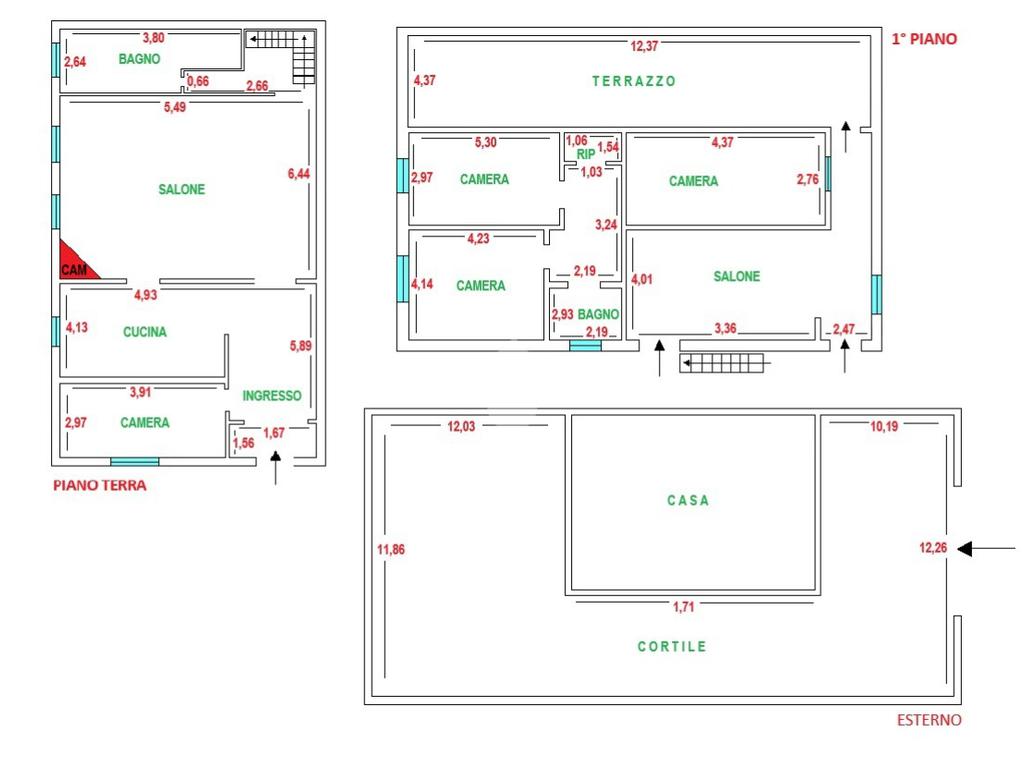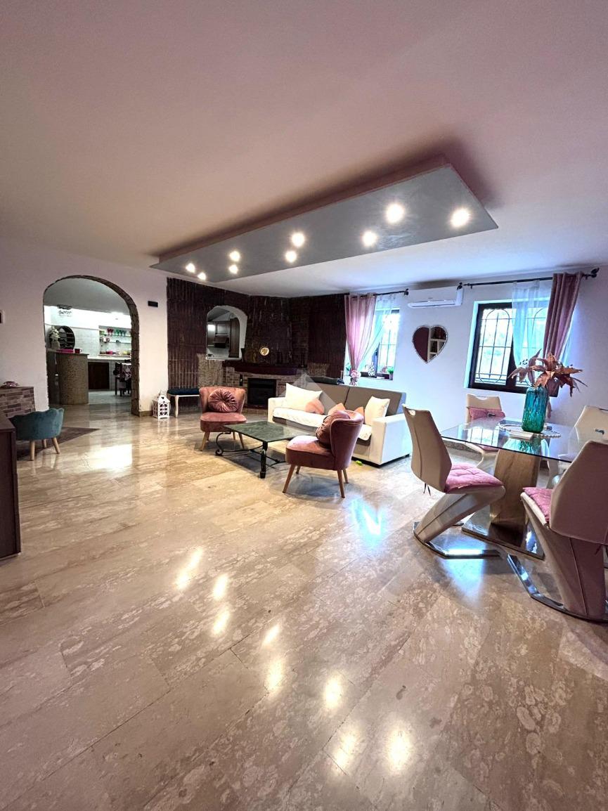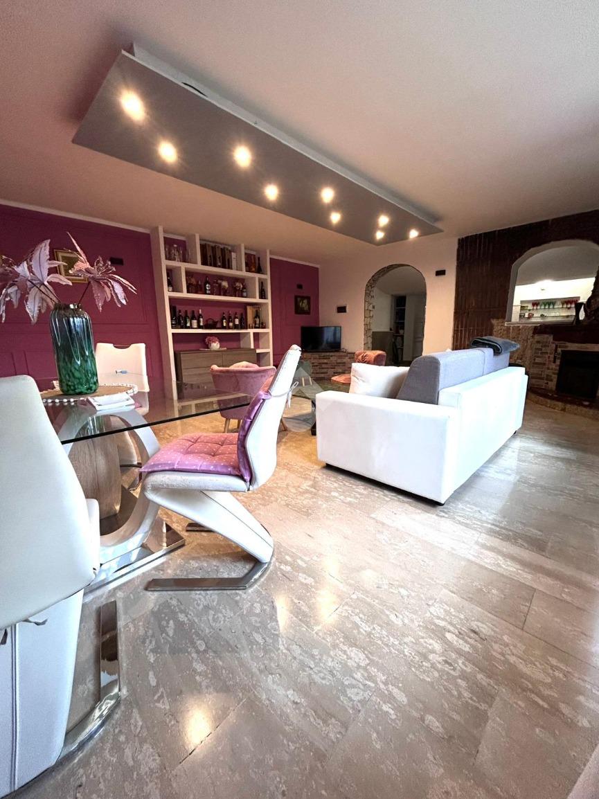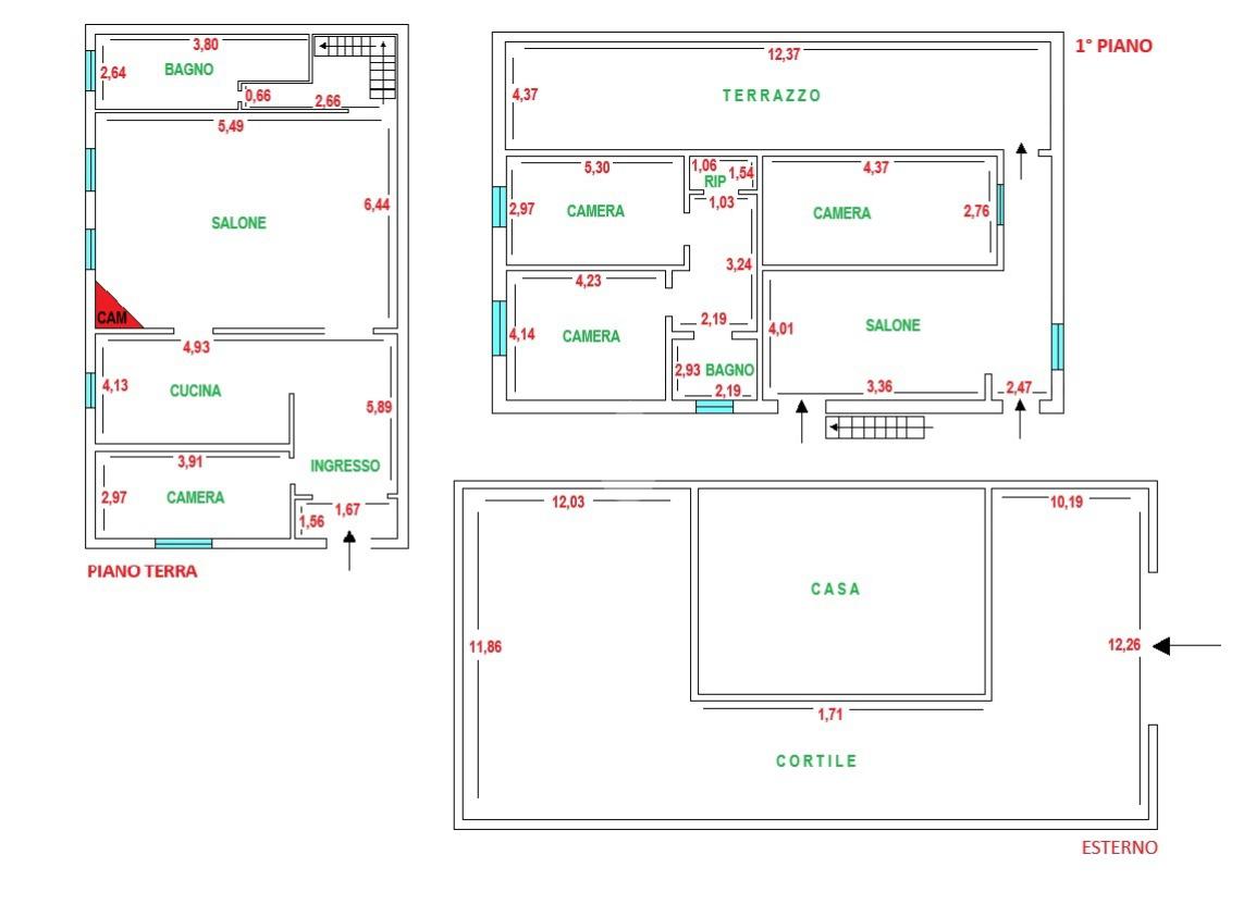 Al piano terra ingresso, uno spazioso soggiorno con camino a pellet, cucina , camera e un bagno. Al primo piano, raggiungibile tramite scala interna, soggiorno con accesso ad un terrazzo a livello , 3 camere da letto, un bagno e un ripostiglio.